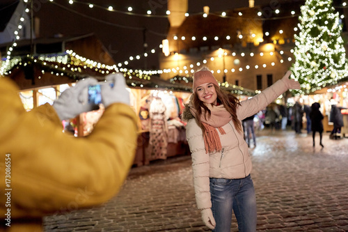 © Syda Productions, Obraz premium happy woman posing for smartphone at christmas