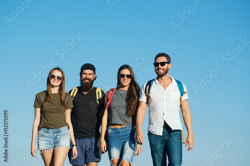© Volodymyr, Obraz premium Happy, women and handsome men smiling on blue sky