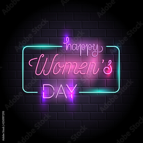 © Veranika Hanchar, Fototapeta premium Happy Womens Day neon sign