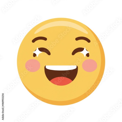 Fototapeta premium Happy Yellow Emoji with Blush and Sparkling Eyes