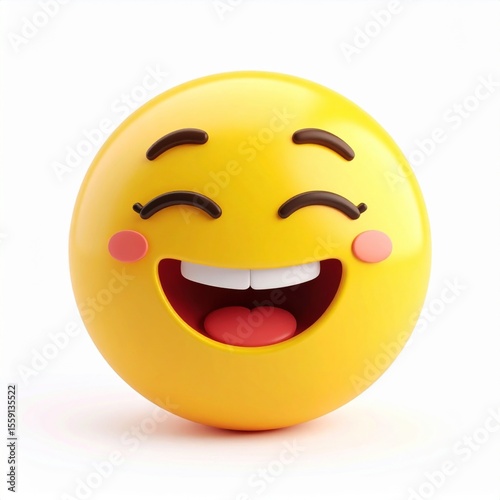 © Suprapti, Fototapeta premium Happy Yellow Emoji with Wide Smile and Blushed Cheeks on White Background