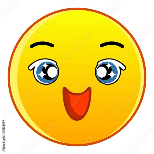 © ylivdesign, Fototapeta premium Happy yellow emoticon icon, cartoon style