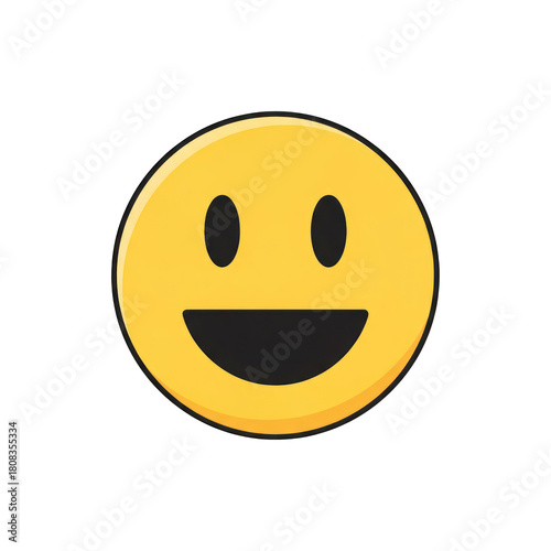 © Tiu, Fototapeta premium Happy yellow face smiling with black eyes and mouth simple design.