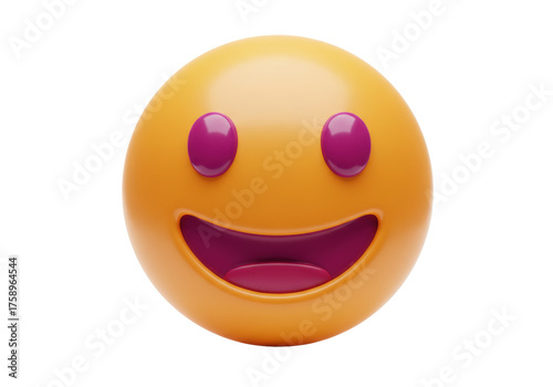 © Florin, Fototapeta premium Happy yellow smiley face PNG isolated on transparent background, cheerful emoji with a big smile for social media and digital communication