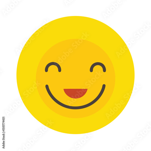 Fototapeta premium Happy yellow smiley face with smiling expression and red mouth on a white background