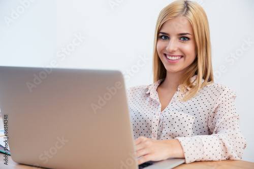 Fototapeta premium Happy young businesswoman using laptop
