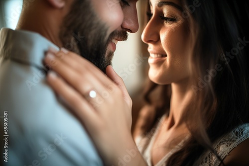Fototapeta premium Happy young couple embracing each other after engagement. Generative AI