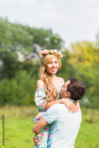 © satura_, Fototapeta premium happy young couple hugging on nature