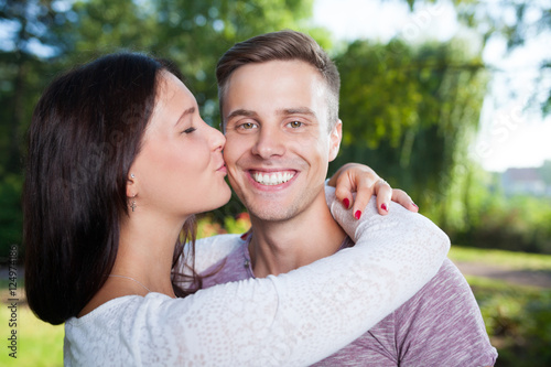 Fototapeta premium happy young couple kissing