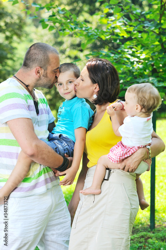 © .shock, Fototapeta premium happy young couple with their children have fun at park