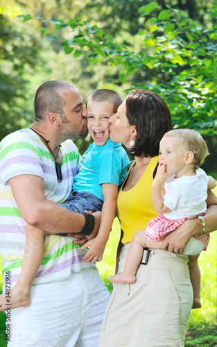 © .shock, Fototapeta premium happy young couple with their children have fun at park