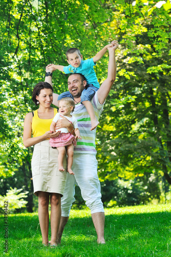 © .shock, Fototapeta premium happy young couple with their children have fun at park