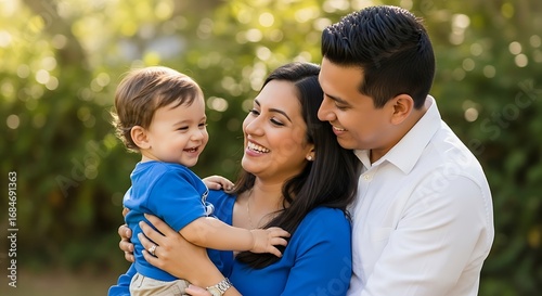 © Aminul, Fototapeta premium Happy Young Family Bonding Outdoors with Love and Affection on a Sunny Day Enjoying Family Time and Creating Lasting Memories