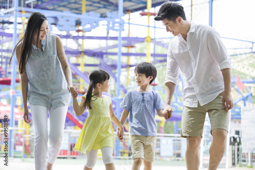 © Blue Jean Images, Naklejka premium Happy young family playing in amusement park