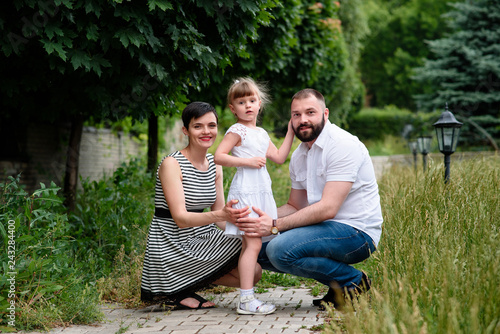 Fototapeta premium Happy young family spending time together outside in green nature.