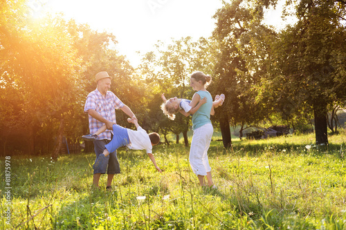 Fototapeta premium Happy young family spending time together outside in nature