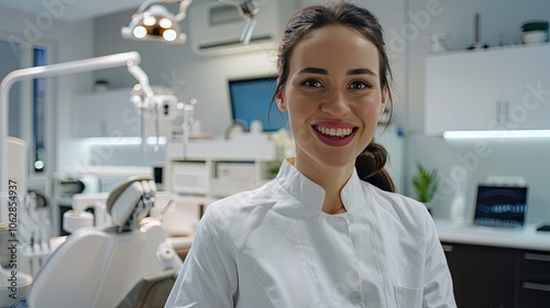 Fototapeta premium Happy young female dentist in dentist's office.