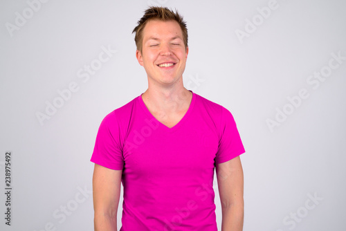 Fototapeta premium Happy young handsome man relaxing with eyes closed