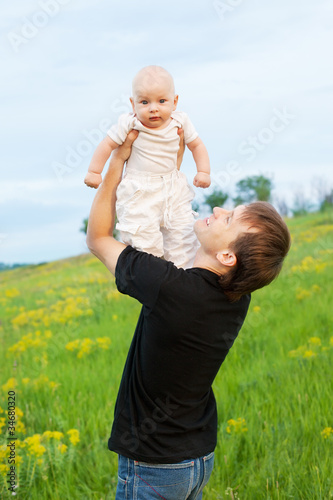 © GVS, Fototapeta premium happy young man playing his baby boy on nature on slope