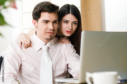 © mrcats, Fototapeta premium happy young relaxed couple working on laptop computer