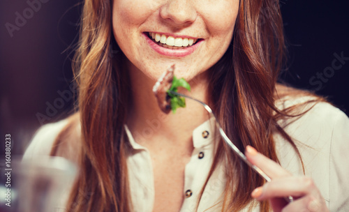 © Syda Productions, Fototapeta premium happy young woman having dinner at restaurant