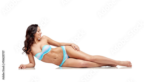 Obraz premium happy young woman lying in bikini swimsuit