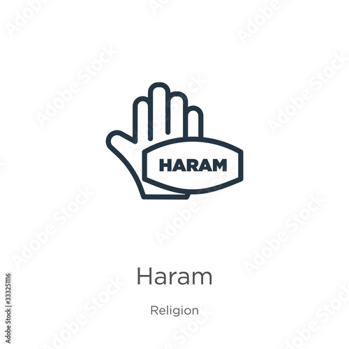 Fototapeta premium Haram icon. Thin linear haram outline icon isolated on white background from...