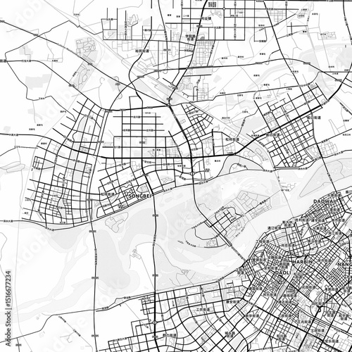 © Knut Hebstreit, Naklejka premium Harbin Area Map with Labels and Neighborhoods - One color, minimalistic design