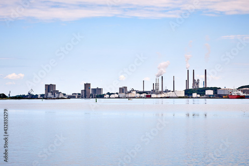 Naklejka premium harbor in denmark with clear blue water and ships