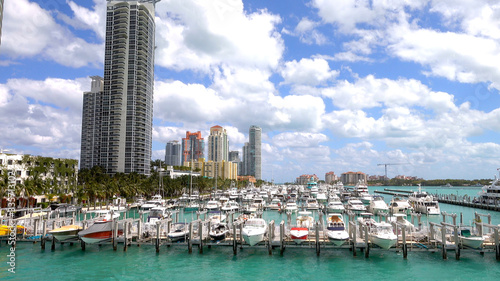 © 4kclips, Obraz premium Harbor in Miami Beach on a sunny day