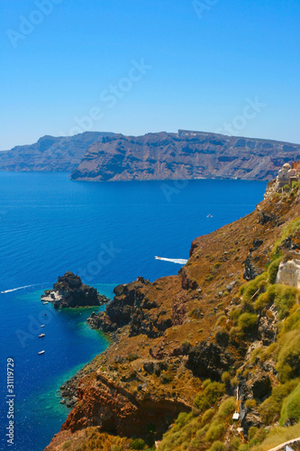 © Aleksandrs Kosarevs, Fototapeta premium Harbor in Santorini with yachts