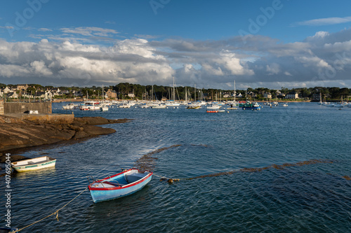 Obraz premium Harbor of Ploumanach on a partly cloudy day in summer
