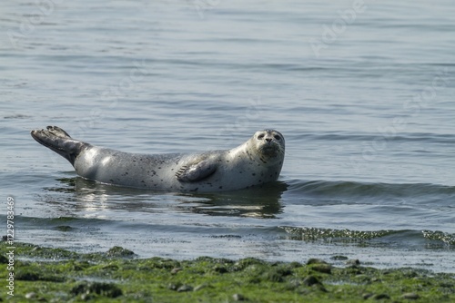 © Edgar Löhr/imageBROKER, Obraz premium Harbor seal (Phoca vitulina), Heligoland, Schleswig-Holstein, Germany, Europe
