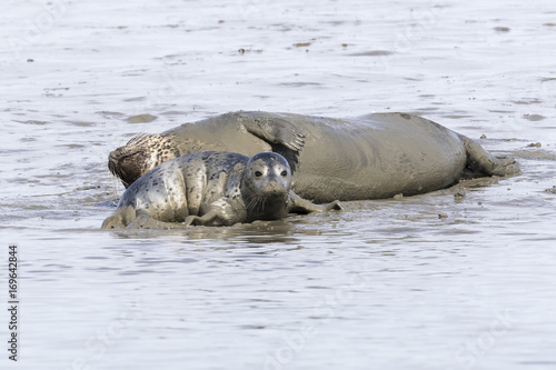 Fototapeta premium Harbor Seal pup lying next to its mother - San Diego, California
