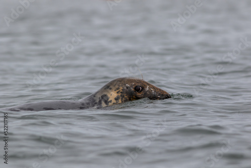 Fototapeta premium Harbor Seal Pup, Phoca vitulina, swimming on a summer morning, Muscongus Bay,...