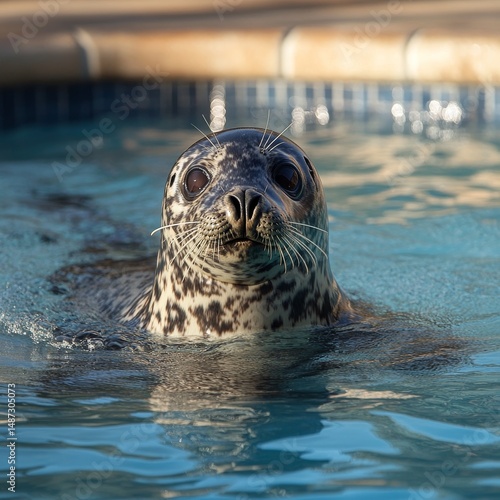 © Asad, Fototapeta premium Harbor Seal's Curious Gaze: A Close-Up Portrait in Tranquil Waters, Revealing the Beauty and Grace of Marine Wildlife in a Serene Aquatic Environment