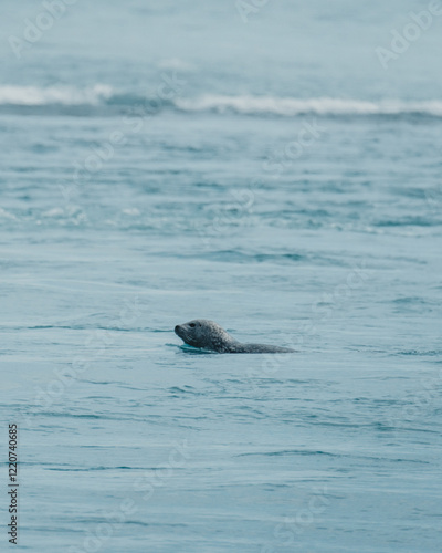 Obraz premium Harbor seal swimming near the coast of Breiðamerkursandur, South Iceland.