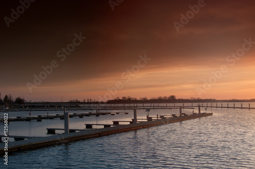 © Adga, Obraz premium Harbor Sunset with no Boats