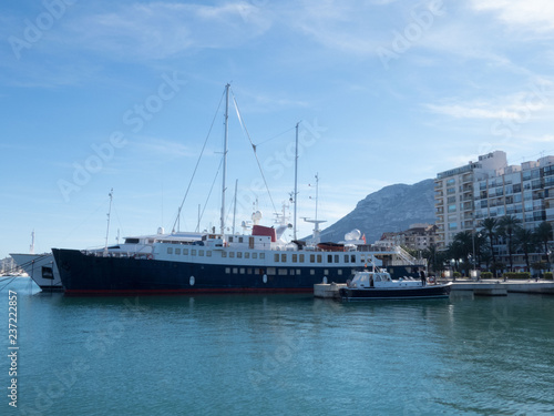 Fototapeta premium Harbour and see ship in Denia, Spain
