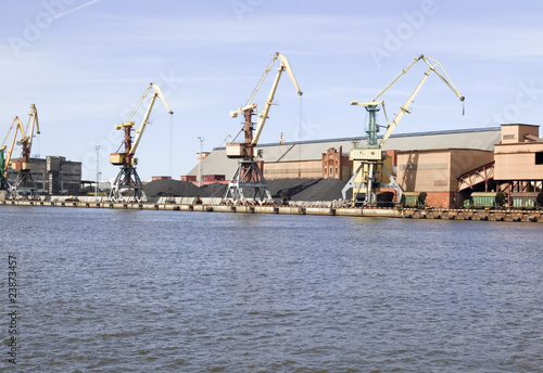 © Arūnas Gabalis, Fototapeta premium Harbour with many ships, blue sky