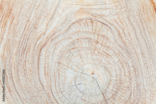 Naklejka premium Hard teak wood stump sections with cracks, annual rings and textured surface...