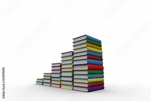 Naklejka premium Hardcover book stacks are ascending in flat design on smooth white...