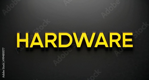 Fototapeta premium Hardware word lettering with yellow glow on plain black dark background