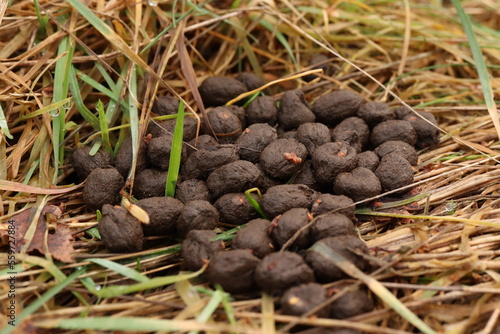 © Jitka, Obraz premium Hare droppings, bay leaves in the grass
