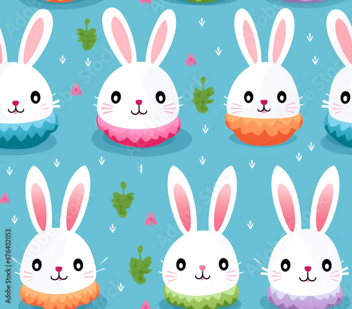 Obraz premium Hare Harmony Hues An enchanting seamless pattern, adorned with an array of gracefully arranged bunny heads, offers a mesmerizing visual feast.