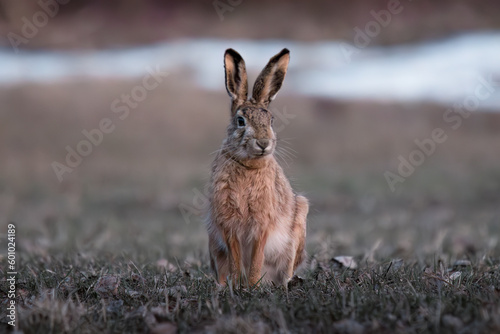 Fototapeta premium hare is sitting in a field in close-up