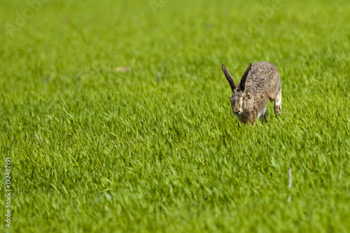 © Iliuta, Obraz premium Hare running through green grass