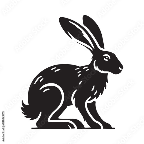 © Vectorhub, Obraz premium Hare silhouette for creative digital projects - Hare black vector
