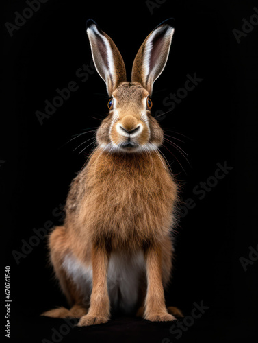 © Vig, Obraz premium Hare Studio Shot Isolated on Clear Black Background, Generative AI