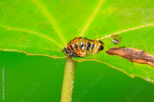 Fototapeta premium Harmonia axyridis puparium on plant